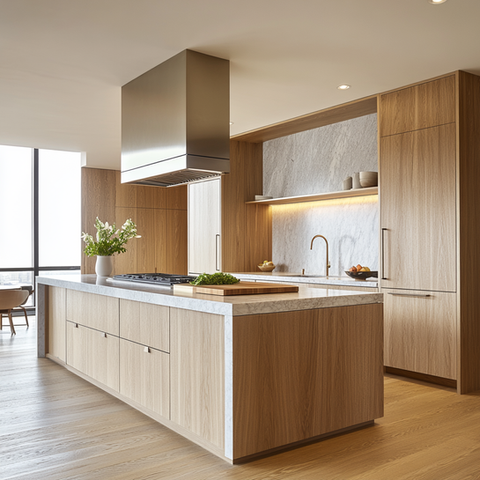 Lighting: Integrated ambient and task lighting woven seamlessly into reveals and backpanels—designed to accentuate material, not overpower it.