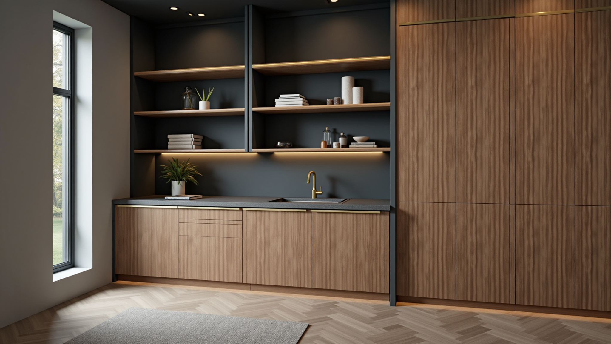Material Focus: Carbonized woods, matte-finished rare veneers, architectural metals, and sustainable composites.
